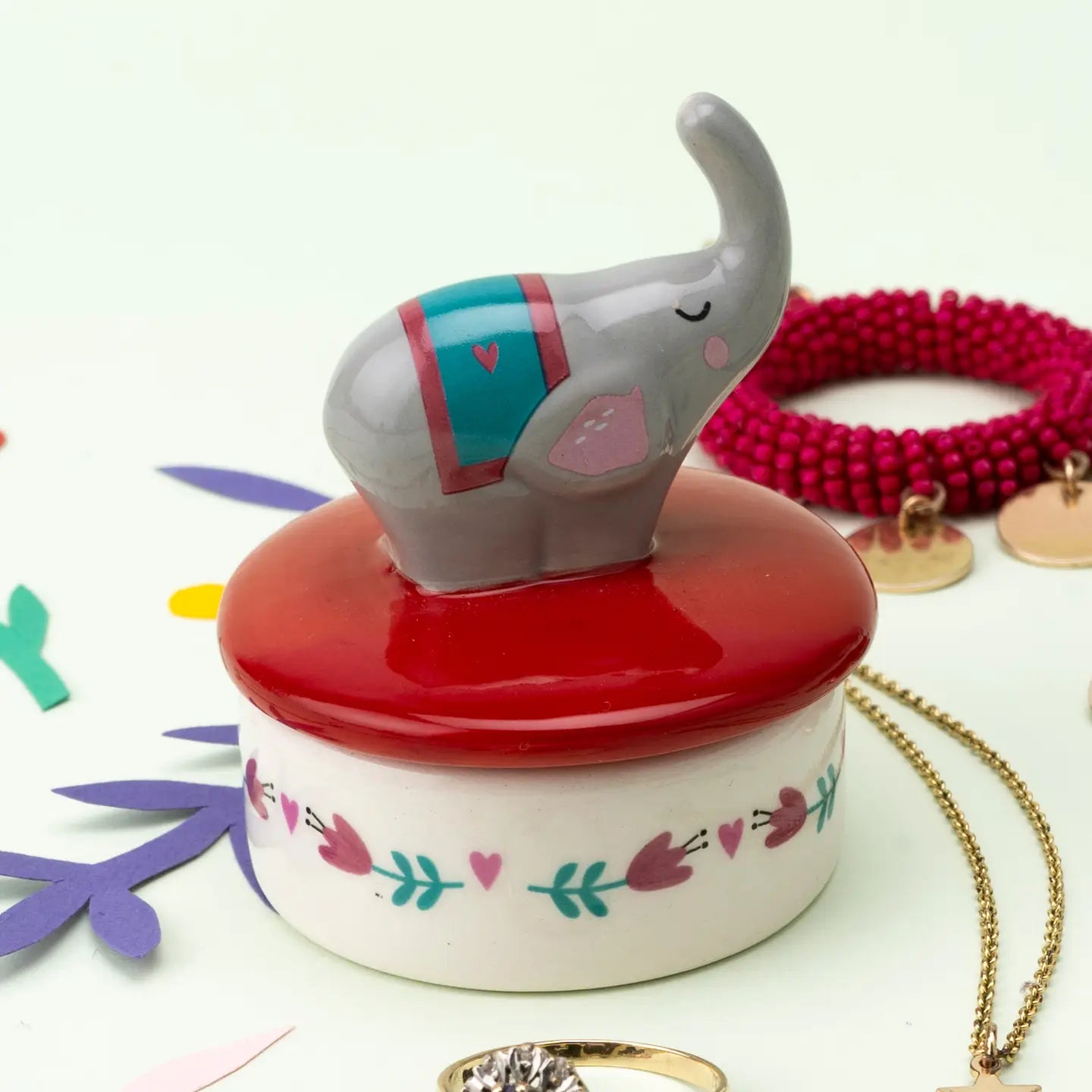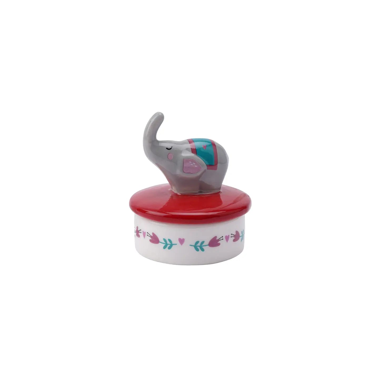 Keramikk Smykkekrukke med Elefantlokk – Floral Design